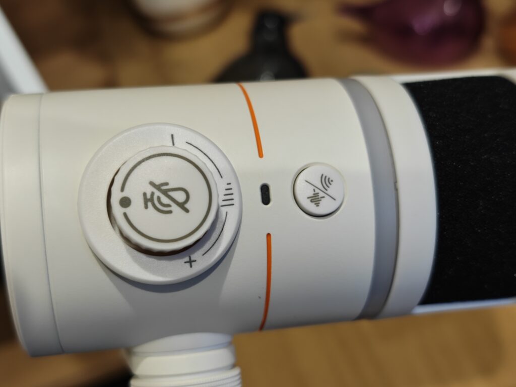 ノイズリダクションON/OFF、モニター音量調整、ミュートがこのマイク上部で変更できます。