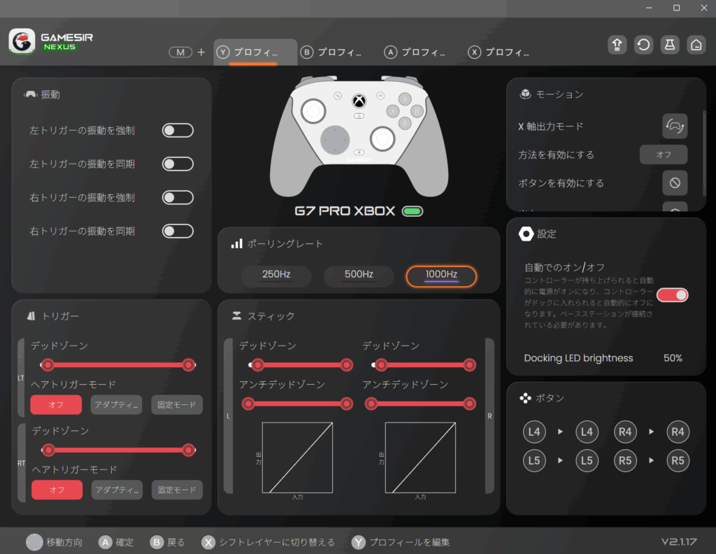 GameSir G7 Proは「TMR(磁気方式)スティック」「1000Hzポーリング対応」「Tri-mode接続」など高機能詰め込んだコントローラーで、価格から見ると非常に豪華な仕様が特徴です。