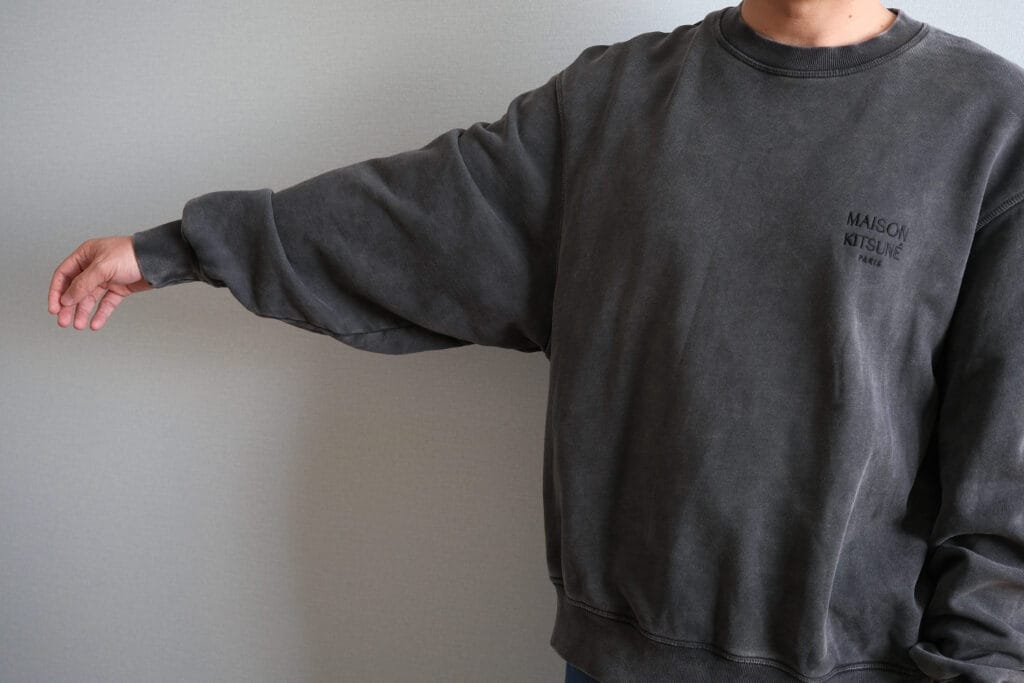 これなんかは同じリラックスシルエットのスウェットシャツのため、同様のサイズ感で着用ができそう。