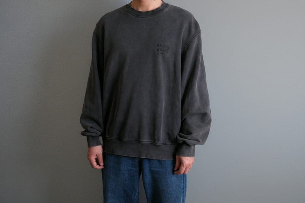 オーバーサイズ感のあるシルエット、フェード加工でユルい雰囲気、控えめなロゴが着やすいアイテム。