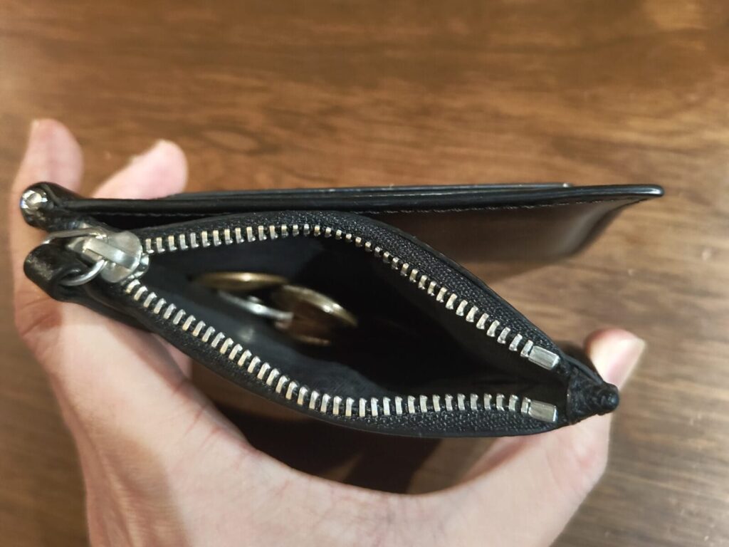 小銭入れはコンパクトもちゃんと独立して用意されていて、日常的な量なら全く問題ない容量。