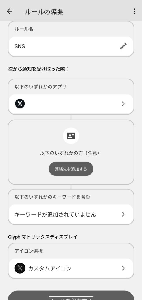 Essential通知機能を使うと、Glyph Matrixにルールを設定した通知のアイコンを表示してくれます。