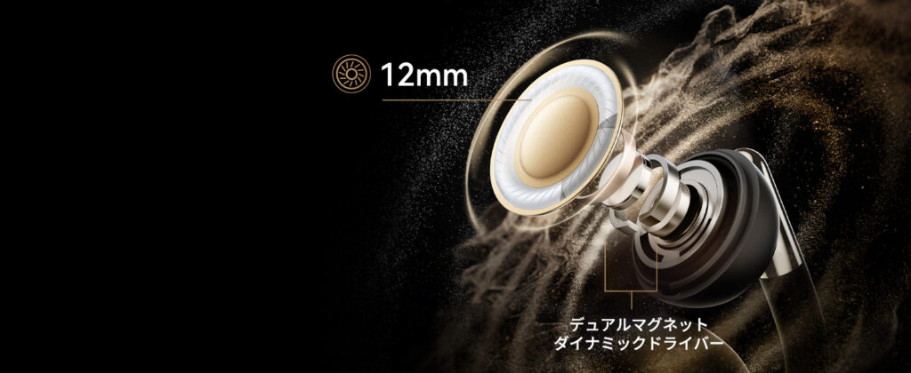 - ドライバー:チタンPVDコーティング12mm デュアルマグネット ダイナミックドライバー+独自のDynamicEQ™Pro